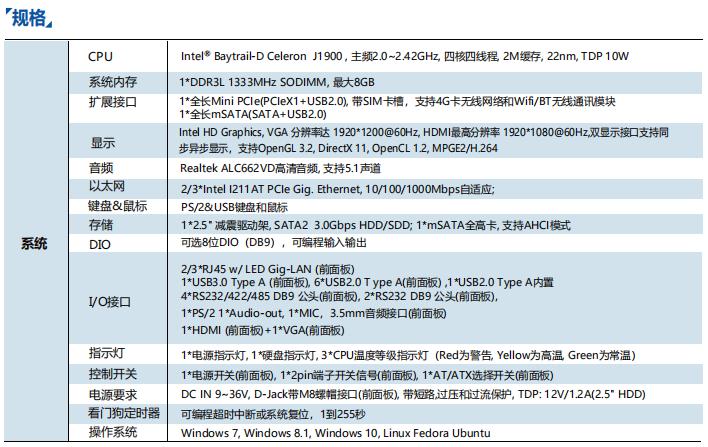 (2)Intel® Baytrail Celeron J1900 2.0-2.42G CPU